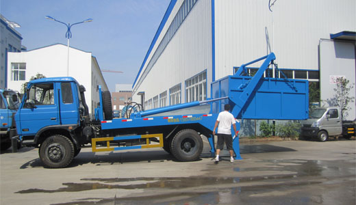 上圖為正在測試東風(fēng)153擺臂式垃圾車(坑下方型斗)