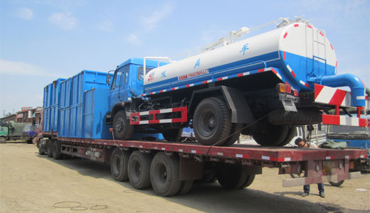 上圖為客戶購買的垃圾箱及吸糞車整車通過半掛來運(yùn)輸