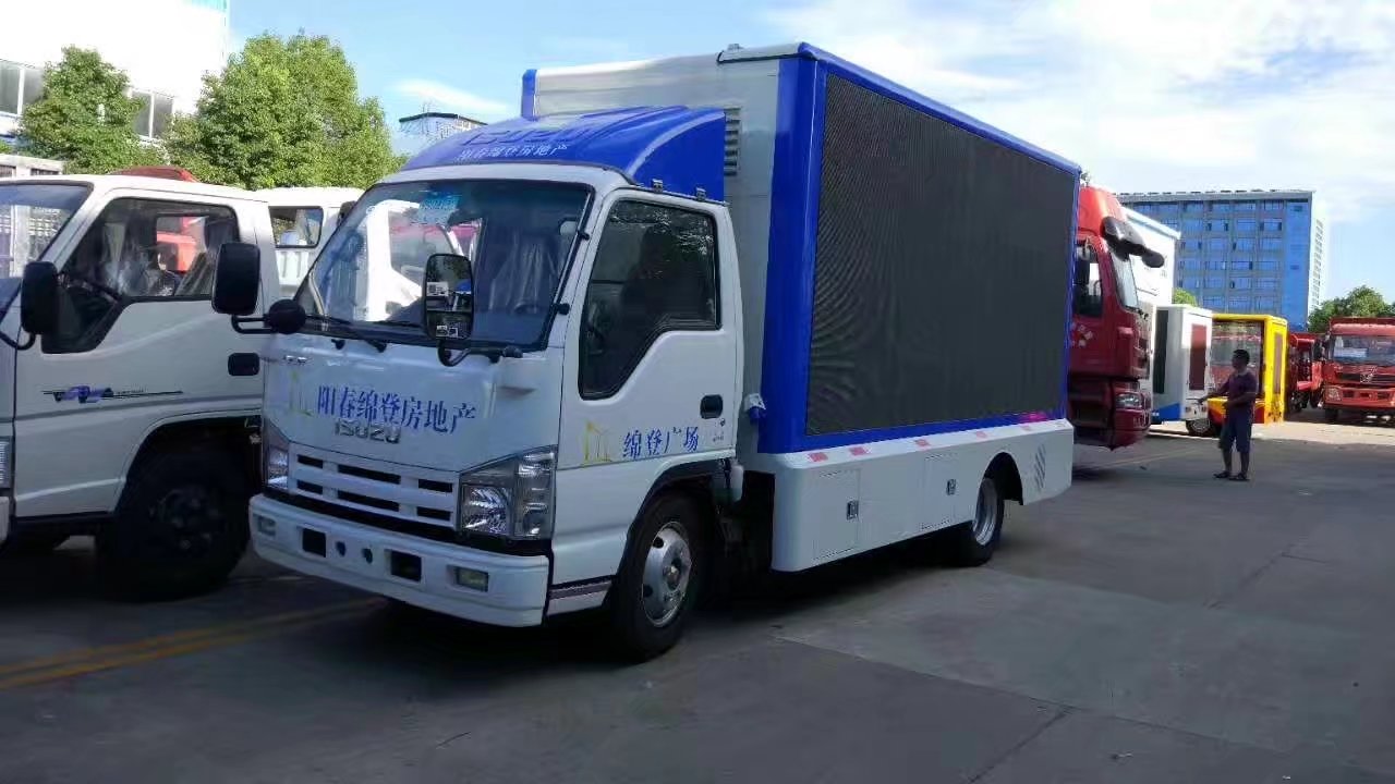 此次客戶訂購(gòu)的這輛五十鈴廣告宣傳車為五十鈴100P系列底盤改裝,三面P6彩屏,主要用于客戶公司房產(chǎn)項(xiàng)目的廣告宣傳工作。