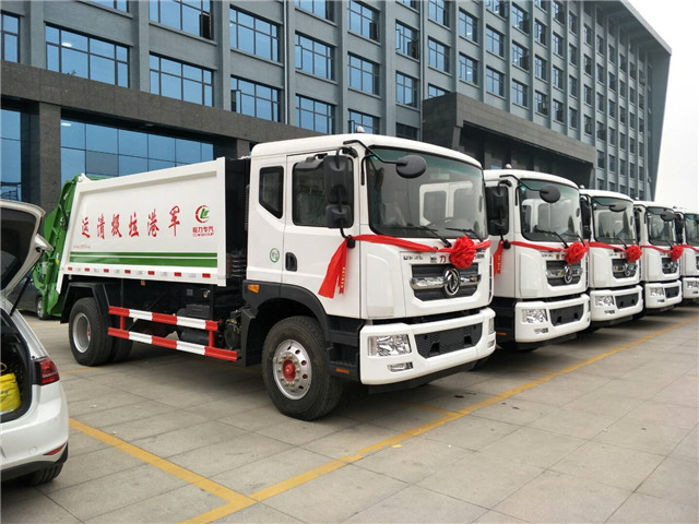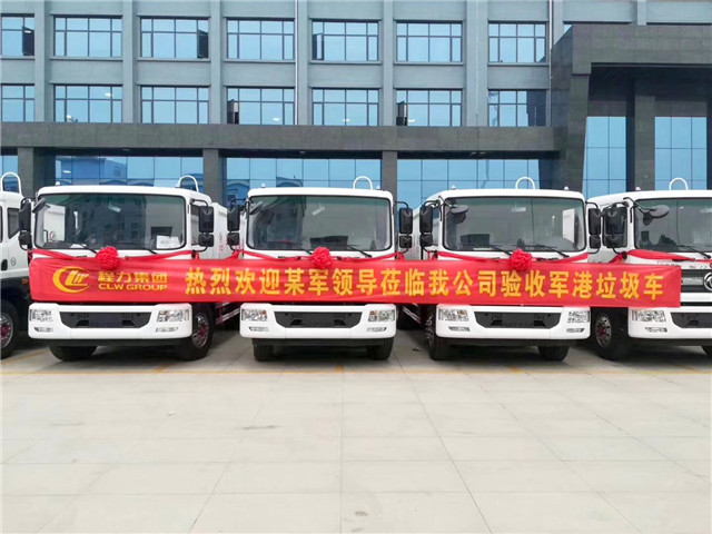 此次軍港采購的這些壓縮式垃圾車采用東風(fēng)多利卡D9系列駕駛室底盤改裝,垃圾箱容積12立方米,康明斯180馬力發(fā)動(dòng)機(jī),后帶斗翻轉(zhuǎn)機(jī)構(gòu),帶PLC一鍵控制,操作方便。