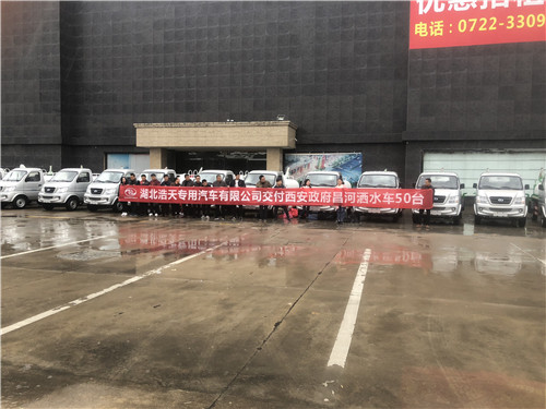 今天就給大家展示一下我們?yōu)⑺噺S家批量生產(chǎn)的灑水車是什么樣的;
