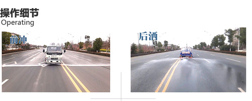 灑水車(chē)前裝有鴨形噴嘴或圓頭沖嘴,后面裝有圓柱開(kāi)灑水噴嘴或蓮蓬頭噴嘴,后部有一工作平臺(tái),裝配有水炮。后部還可裝8個(gè)噴嘴(選裝)噴水器一般用于沖洗街道,起除塵和降溫作用,其噴水器可以用調(diào)節(jié)噴嘴螺紋的方法改變噴水器的噴灑方向和角度,高射水炮可以用于城鄉(xiāng)園林綠化及應(yīng)急消防。蓮蓬嘴可以澆落路中間噴水器沖起的灰塵,起到清潔空氣的作用。