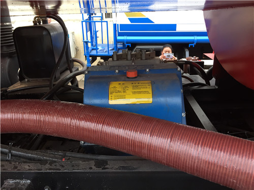 高壓清洗吸污兩用車溢罐,污水從四通閥處流出,污染作業(yè)地點(diǎn)。如果污水進(jìn)入泵中,會污染泵中的機(jī)油,并且加速泵的磨損。
