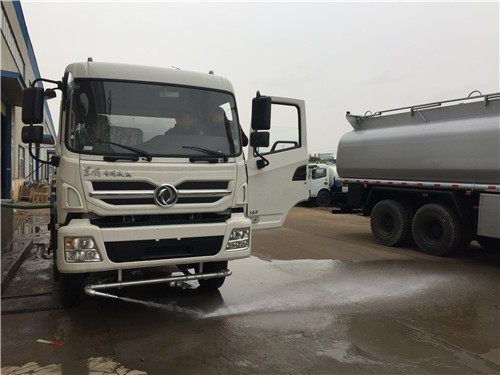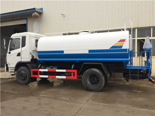 灑水車采用東風(fēng)底盤,白色排半可前翻駕駛室,康明斯210馬力國五發(fā)動(dòng)機(jī),陜齒小八檔變速箱,4300+1300m雙橋軸距,10噸后橋,10.00R20原廠鋼絲胎,原廠abs,帶方向助力,離合助力器,氣剎制動(dòng)。