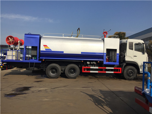 目前最受房地產(chǎn)歡迎的多功能消防灑水車為噴霧灑水車,該車除了常規(guī)的灑水車的配置以外,還加裝了一套噴霧系統(tǒng),噴霧系統(tǒng)主要由電機,電泵和噴灑總成組成,最大作業(yè)半徑為35米,可以遙控電控,噴霧系統(tǒng)可以旋轉(zhuǎn),點頭工作。噴霧系統(tǒng)最大電機功率高達5.5千瓦,水泵點功率6千瓦,風(fēng)機攜帶18個噴霧頭,噴霧頭可更換。