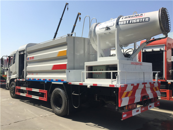 本車具有獨立的高、低壓兩套水路系統(tǒng),為抑塵車工作提供壓力水源。其工作原理是:利用高壓水泵產(chǎn)生的高壓水,經(jīng)噴水架的高壓噴嘴噴出,利用高壓水流的動能,以高壓力、低流量的方式抑塵,超遠射程,高效節(jié)水,能將路面的陳舊污漬抑塵干凈;或高壓水經(jīng)左(右)角噴噴出,清洗路緣、人行道及護欄隔離區(qū);使用高壓噴槍還可抑塵路標(biāo)、廣告牌、高架路等;噴霧系統(tǒng)具有強大的噴霧降塵、噴撒空氣消毒劑及調(diào)節(jié)空氣濕度功能。