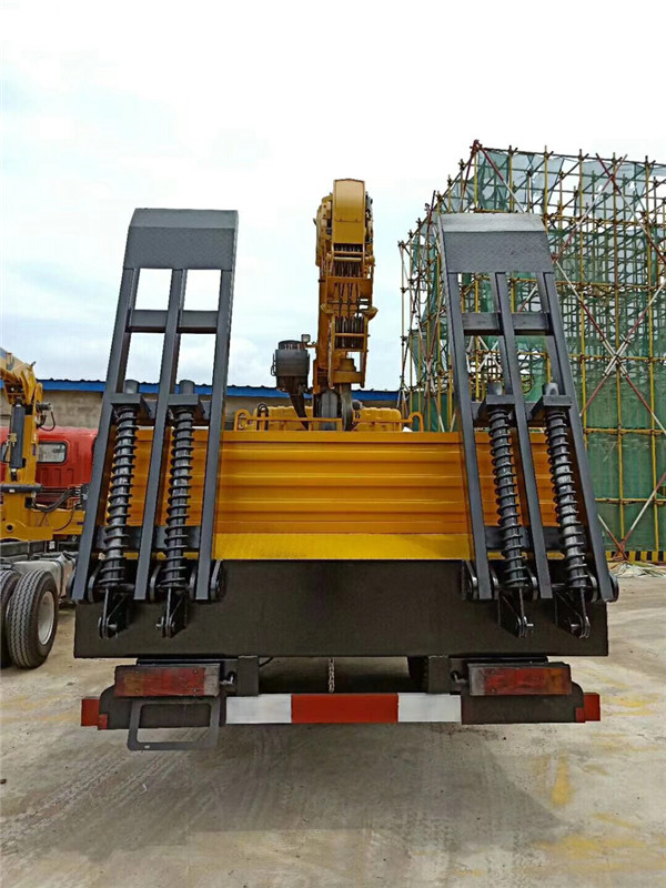 東風(fēng)隨車吊可采用東風(fēng)后雙橋底盤,齊心新款駕駛室佩帶氣囊座椅,電動(dòng)升降玻璃,電動(dòng)液壓升降駕駛室,方向助力,斷氣剎,abs防抱死,玉柴240馬力和玉柴270馬力國(guó)五發(fā)動(dòng)機(jī),10.00R20鋼絲胎,5噸前橋東風(fēng)德納10噸雙后橋,懸掛也采用重載設(shè)計(jì),保證承載性能。法士特小8檔變速箱,外形尺寸10450,9980×2500×3200(mm),總質(zhì)量25噸上戶噸位13噸車身自重10.9噸,。標(biāo)準(zhǔn)型上裝橫梁采用12*12規(guī)格6mm厚方鋼,整根貫穿式設(shè)計(jì),保證承載性能,貨箱平板8mm厚花紋板;重載型上裝橫梁采用12*10規(guī)格8mm厚方鋼,整根貫穿式設(shè)計(jì),承載性能更好,貨箱平板8mm厚花紋板,爬梯采用重載加強(qiáng)型設(shè)計(jì),采用三道筋雙簧加固處理,帶有后支腿,平板帶有斜支撐,貨箱平板可以伸縮,伸出3米,縮回2.5米,貨箱平板長(zhǎng)度8米,是運(yùn)輸20噸-30噸大型貨物、大型工程機(jī)械等最理想的隨車吊。