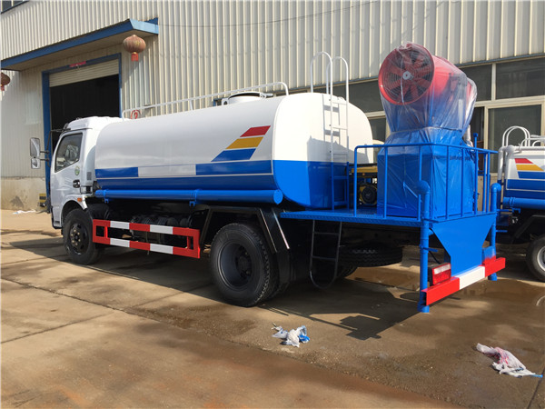 一臺“霧炮”灑水車可噴灑100多米?!办F炮”又叫環(huán)保除塵風(fēng)送式噴霧機(jī),安裝在車的后半部分?!办F炮”的原理是在液泵噴水后,利用風(fēng)機(jī)將水噴灑出去,能噴灑120米遠(yuǎn)、90米高。向天空噴灑水霧,達(dá)到抑制揚塵、綠化除塵等效果。