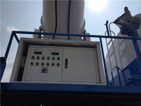 5.配套柴油發(fā)電機(jī)組供電安裝在運(yùn)輸車輛上,操作靈活,使用安全可靠,遙控和人工控制操作,可隨意控制調(diào)節(jié)水平旋轉(zhuǎn)噴霧角度。