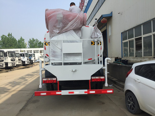 這款霧炮灑水車配備了4缸柴油發(fā)電機(jī)組,噴灑效果可達(dá)40米。也屬于一款多功能灑水車,在東風(fēng)多利卡五噸灑水車的基礎(chǔ)上添加了霧炮噴灑功能,主要目的是降塵,和地面噴灑清洗。一車多用,既節(jié)省了購(gòu)車成本,也達(dá)到了使用要求。