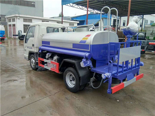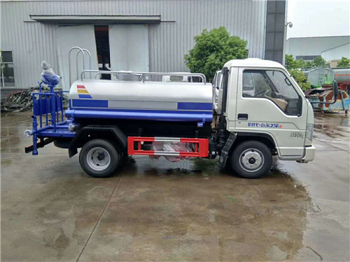 福田灑水車前裝有鴨嘴形噴嘴或圓頭沖嘴,后面裝有圓柱形灑水噴嘴或蓮蓬頭噴嘴,后部有一工作平臺,裝配有水炮。后部還可裝8個噴嘴。