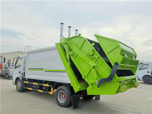 壓縮垃圾車容積為:4-6立方米,可裝生活垃圾車3.4-5噸,廂體可選用碳鋼或錳板材質(zhì)制作,液壓控制系統(tǒng)可選用國產(chǎn)配件或進口配件,駕駛室內(nèi)外雙操作系統(tǒng),PLC智能一鍵循環(huán)控制系統(tǒng)。
