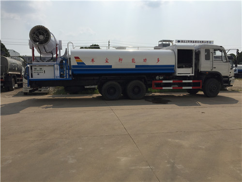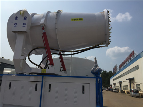 一臺(tái)“霧炮”灑水車可噴灑100多米。“霧炮”又叫環(huán)保除塵風(fēng)送式噴霧機(jī),安裝在車的后半部分?!办F炮”的原理是在液泵噴水后,利用風(fēng)機(jī)將水噴灑出去,能噴灑120米遠(yuǎn)、90米高。向天空噴灑水霧,達(dá)到抑制揚(yáng)塵、綠化除塵等效果。