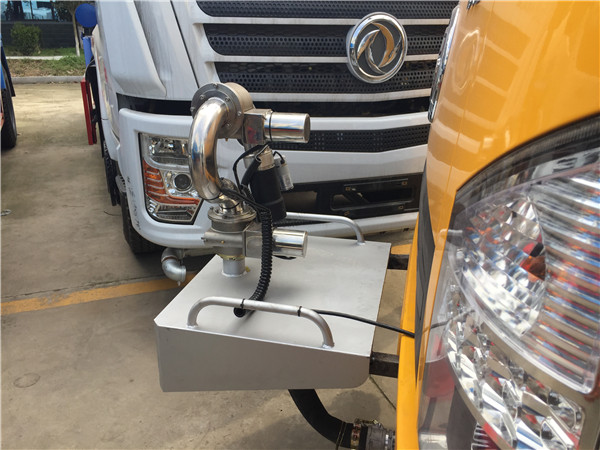 除了改變前沖噴頭的形式外,當(dāng)灑水車標(biāo)準(zhǔn)配備三彎前沖時(shí),受到底盤(pán)影響,如:采用福田小卡底盤(pán)時(shí),由于灑水車前部過(guò)低,一般會(huì)將前沖噴頭位置改裝在駕駛室和罐體下方,俗稱“腰沖”,可有效避免上坡或路況差時(shí)對(duì)噴頭產(chǎn)生沖擊而造成的損壞。還可根據(jù)客戶要求對(duì)前沖噴頭加裝氣動(dòng)或電氣控球閥,以方便司機(jī)不出駕駛室即可操控灑水噴頭的開(kāi)關(guān)。
