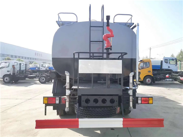 灑水車后部安裝有工作平臺,帶安全護欄,平臺上安裝綠化灑水炮,灑水炮可360°全方位旋轉(zhuǎn),可上下120°調(diào)節(jié)噴頭的仰角??蛇B續(xù)調(diào)成直沖狀、大雨、小雨、毛毛雨,灑水炮射程大于35米,緊急時可用于消防。