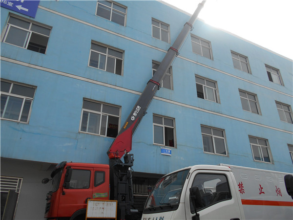 ● 伸縮直臂更易于整車底盤安裝:伸縮臂在結構上比較松散,有利于整車載荷的分散,而且重心也離安裝位置較遠,特別是在吊重物的時候,更利于分散底盤軸荷。 而采用折疊臂的隨車吊,無論是前置還是后置,由于其結構上比較集中,重心容易集中在底盤的某一軸上,往往某一橋上產生較大負荷,不利于整車的安裝。