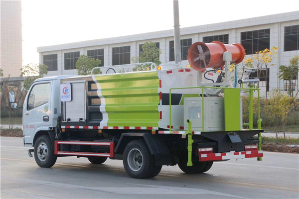 多功能抑塵車罐體:采用武鋼生產(chǎn)的Q235優(yōu)質(zhì)碳鋼板制作,罐體有效容積5立方,可選圓形罐體或方形罐體,帶前沖后灑、側(cè)噴功能,尾部帶工作平臺,平臺上安裝綠化高炮,垂直吸程6.5米,揚塵14米,帶消防接口、自流閥,可自吸自排。噴霧機(jī)組:尾部裝高效率噴霧式車載風(fēng)機(jī),霧炮射程可達(dá)30-80米,柴油發(fā)電機(jī)組,電子搖控操作,可上下左右自動搖動噴霧,實現(xiàn)360度旋轉(zhuǎn)。