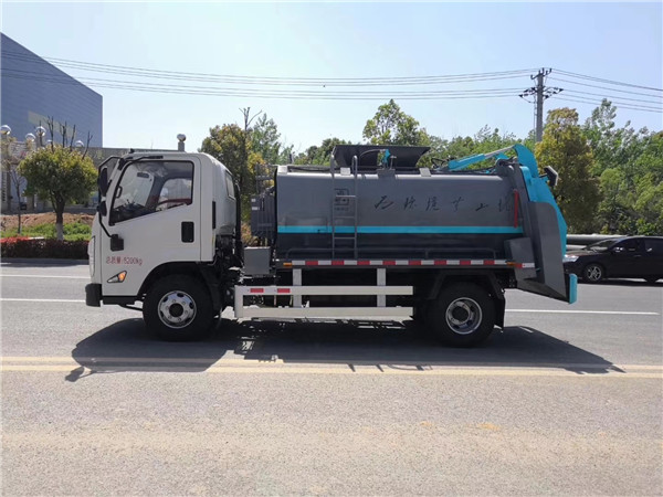 因為龐大的上裝直接讓車內(nèi)的后視鏡失去了作用,取而代之的是一個電子顯示屏,時時監(jiān)控著垃圾回收口的狀態(tài),一旦到達一定數(shù)量或者體積,則可以使用壓縮板進行壓縮作業(yè)。動力方面并沒有太多的變化,搭載的是2.9排量的江鈴JX4D30發(fā)動機,該發(fā)動機最大輸出扭矩為382牛米,最大輸出馬力達到152馬力,排放標準也滿足當下的國五排放需求。與之搭配的是格特拉克的6速手動變速箱,這也是為無泄漏壓縮式垃圾車在作業(yè)時的速度需求提供強大支撐。車輛后橋采用氣剎制動,同時從板簧部分可以看出這底盤是一臺重載版車型,畢竟要承受5噸左右的上裝重量以及垃圾運輸?shù)妮d重需求。