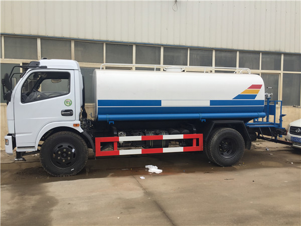 東風(fēng)多利卡5方灑水車,朝柴73KW柴油發(fā)動機(95馬力),7.00-16尼龍?zhí)?,灑水車駕駛室顏色白色,自吸自排灑水泵,前沖,后灑,側(cè)噴,高位花灑,后平臺灑水炮,水罐容積5立方,2根罐體等長抽水管,一個消防接口,一自流口。