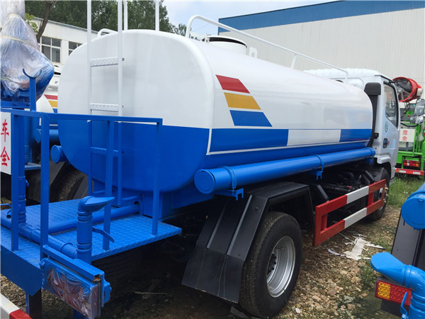 罐體采用4毫米厚武鋼產(chǎn)容積板焊接而成,內(nèi)設(shè)防浪板,程力大功率灑水泵,可自吸水,加壓排水,前沖15米寬,后灑壓塵,側(cè)噴花灑噴頭,尾高綠化高位水炮,射程28米,可調(diào)節(jié)水柱、大中雨、毛毛雨等,可做臨時(shí)消防滅火用。