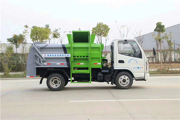 5、在駕駛室內(nèi)和車尾分別設置了操作按鈕,在垃圾場卸垃圾時,作業(yè)人員無需下車,在駕駛室內(nèi)即可完成卸載垃圾的全過程,非常方便。