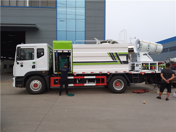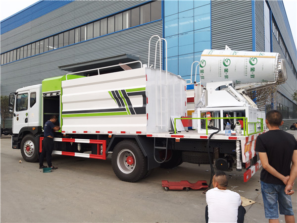 天然氣抑塵車又稱為:霧炮車、噴藥車。霧炮車噴射的水霧顆粒達(dá)到微米級(jí),能有效分解空氣中的污染顆粒物、塵埃等,在霧霾天氣下用于降塵除霧,可以有效的緩解霧霾,其節(jié)水的特性同樣也可以用作灑水車使用。霧炮車還可以降塵、灑水,把樹上的灰塵洗掉。霧炮車噴灑出的水霧與懸浮在空氣中的PM2.5和PM10粉塵顆粒吸附、聚合、沉降,達(dá)到消除污染物和減霾的目的。盡管霧炮口徑巨大,但其噴灑耗水量僅為傳統(tǒng)灑水車的兩到三成,覆蓋面積和除塵效率卻高出20倍。既提高效率,也避免路面積水影響交通。