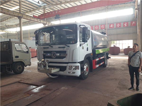 湖北武漢灑水車前裝有鴨嘴型噴霧或圓頭沖嘴,后面裝有圓柱形灑水砣,側(cè)噴花灑蓮花頭,車后部裝有高射噴槍。