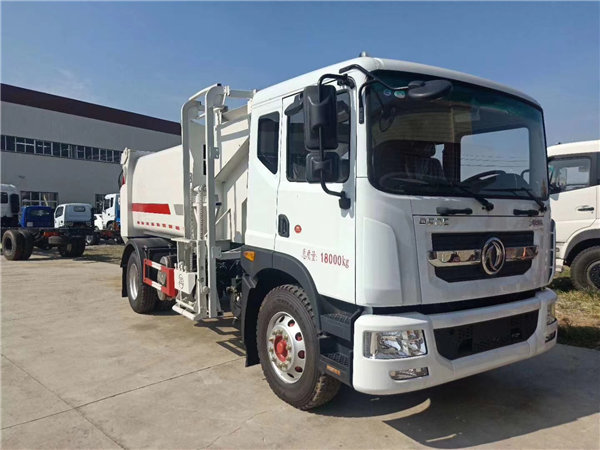 東風多利卡D9后裝餐廚式垃圾車,搭配康明斯180馬力國五發(fā)動機,法斯特八檔箱,10.00R20鋼絲胎,軸距4500mm,原廠空調(diào),正規(guī)東風GB7258-2017新規(guī)底盤;上裝采用Q345高強度錳鋼板制作,廂體容積:12.8立方米,可裝32立方散裝垃圾,大流量液壓泵,大流量手自一體多路換向閥,可編程PLC電控系統(tǒng)帶無線遙控器操作系統(tǒng),雙污水廂,雙向壓縮,卸料時帶一鍵循環(huán)系統(tǒng),司機不下車可完工卸料工作。尾部選裝翻擺臂斗機構(gòu),選裝遙控器操作。