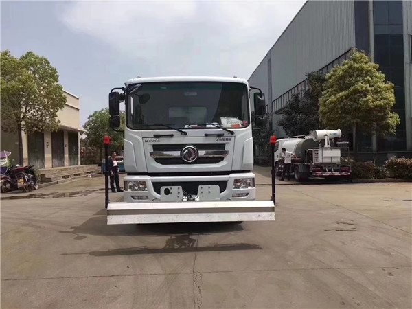 灑水車加裝高壓清洗前噴頭位置較低,靠近地面,噴灑壓力較大,可用于沖洗路面;灑水車后噴頭一般左右安裝一個(gè),其位置較高,故灑水面較寬,用于公路施工灑水。使用后噴時(shí),應(yīng)將前噴管關(guān)閉,使用可調(diào)噴頭灑水時(shí),灑水寬度可以根據(jù)需要調(diào)整。灑水寬度越寬,中間重疊量越少,灑水密度越均勻。