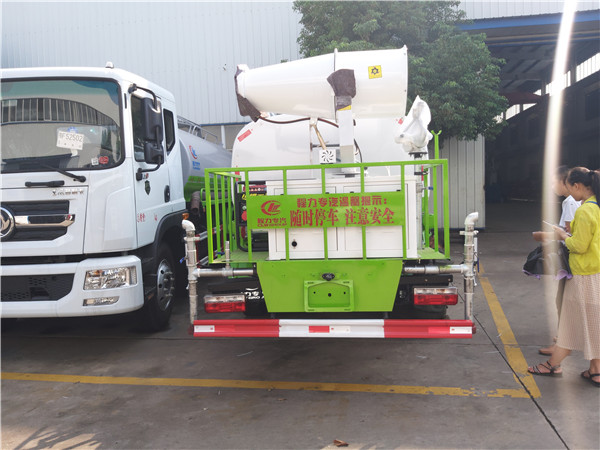 從圖片上可以看到,這臺(tái)國(guó)六東風(fēng)灑水車的尾部的側(cè)噴被省略掉,剩下的后灑采用了異形抬掛安裝,閥門開啟采用了氣動(dòng)設(shè)計(jì),駕駛員一鍵式操作,方便實(shí)用。高位花灑同樣被省略掉了,增加了噴霧降塵噴頭系統(tǒng),該系統(tǒng)采用了軟接安裝,可抬高或者放低噴灑高度,一鍵式的氣動(dòng)開啟設(shè)計(jì)同樣被應(yīng)用在了后尾部設(shè)計(jì)上。