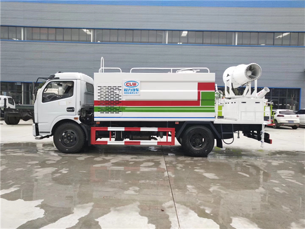 2.東風抑塵車功轉換效率高、射程遠、覆蓋面積大、霧粒細小且均勻、抑塵效果好。水霧與飄在空中的塵埃接觸時,被塵埃所吸附,加大塵埃的比重,抑制塵埃在空氣中的流動,并加速塵埃沉降,實現對空氣的凈化。