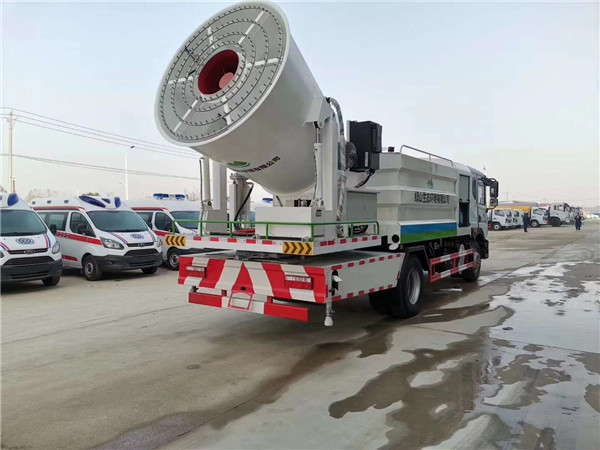 東風(fēng)多功能抑塵車噴霧機配置:wf-120s型,132KW濰坊華柴發(fā)電機組(全自動5保護功能)、12T不銹鋼多級離心泵,無線遙控操作,及手動操作。霧化距離100米(靜風(fēng)室內(nèi)距離)實際射程:(霧化射程會受濕度、溫度、風(fēng)速等各方面天氣因素的影響,另外天氣干燥地區(qū)一部分在空中被蒸發(fā)掉)。帶隨車工具及相關(guān)手續(xù)。
