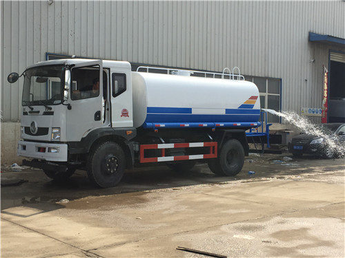 另外一種是不上牌的東風9噸環(huán)衛(wèi)灑水車,底盤采用東風單排帶翻轉駕駛室,3950軸距,900尼龍?zhí)?,帶方向助力,斷氣剎,帶暖風不帶制冷。發(fā)動機可選:玉動140馬力(5檔帶副變速),也可選康明斯170馬力(6檔帶副變速)。