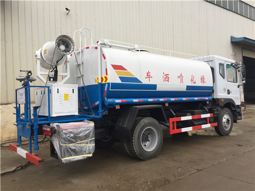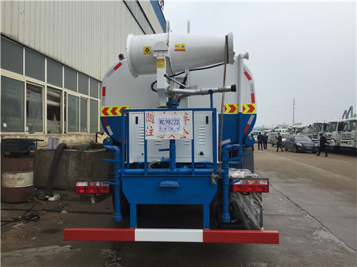 前沖主要是對路面進(jìn)行沖洗,主要用于環(huán)衛(wèi)路面清洗,后灑主要用于降塵,右位花灑也用于降塵也可以用于澆灌樹木。后工作平臺高炮就厲害了,這個抑塵車后工作平臺高炮能用于消防滅火,也能用于澆灌距離遠(yuǎn)又高的樹木,近的地方可用霧狀進(jìn)行澆灌,就是多功能灑水炮。