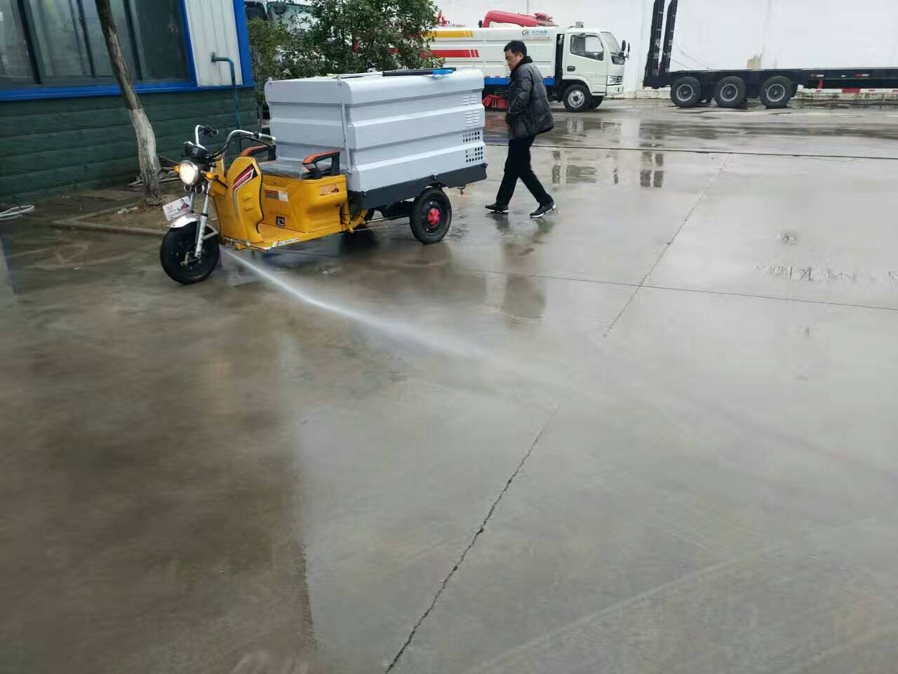 電動三輪高壓清洗車是吸收先進清洗機理念,為環(huán)衛(wèi)、物業(yè)、保潔公司專門設計的一款簡易移動式沖洗車。產品采用優(yōu)質電動三輪車底盤,裝配專業(yè)的高壓清洗機和水泵,使用方便快捷。內置600升專用塑料水箱,永久防銹,是城市街道、物業(yè)小區(qū)保潔性價比最高的沖洗車產品!