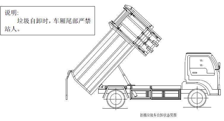 程力專用汽車掛桶式垃圾車(以下簡(jiǎn)稱垃圾車)是用于城鎮(zhèn)內(nèi)的垃圾收集、轉(zhuǎn)運(yùn)、卸料作業(yè)的專用車輛。該車是由汽車底盤、自卸油缸、提升機(jī)總成、頂蓋(選裝)、附車架、垃圾箱體等組成。該車操作由液壓控制系統(tǒng)來完成,控制方式可以為手動(dòng)或電氣控。該車主要用于城鎮(zhèn)垃圾的垃圾收集、轉(zhuǎn)運(yùn)和卸料。操作開提升控制閥將垃圾桶隨提升機(jī)向上升起并翻轉(zhuǎn)傾斜,桶內(nèi)垃圾被倒入車廂內(nèi)完成垃圾單次裝載,反向操作提升控制閥,垃圾桶隨提升機(jī)而放下;完成垃圾裝載后再進(jìn)行傾卸時(shí),操作自卸控制閥,垃圾箱繞后翻轉(zhuǎn)軸傾斜體舉,箱體后門打開,垃圾傾卸出箱體;起該車由液壓控制系統(tǒng)來完成該車的提升機(jī)的上升和下降及垃圾的自卸功能,降低了工人的勞動(dòng)強(qiáng)度和改善了工作環(huán)境。該垃圾車的收運(yùn)方式是目前國(guó)內(nèi)泛采用的垃圾收集轉(zhuǎn)運(yùn)方式,其專用裝置的功能均以汽車發(fā)動(dòng)機(jī)為動(dòng)力,通過液壓機(jī)構(gòu)手動(dòng)或電控、氣控來實(shí)現(xiàn)。車輛的箱體采用優(yōu)質(zhì)炭鋼板全密封焊接結(jié)構(gòu),具有強(qiáng)度高、重量輕,防塵、防溢不產(chǎn)生二次污染等優(yōu)點(diǎn)。垃圾車整車基本性能與原底盤車相同,用戶請(qǐng)參閱原底盤車使用手冊(cè)。本用說明書僅介紹專用改裝部分的有關(guān)操作、檢查和維修保養(yǎng)。在使用車輛前,我們強(qiáng)烈要求您能夠通讀本說明書,并對(duì)其中的操作程序做到得心應(yīng)手。我廠對(duì)產(chǎn)品將會(huì)進(jìn)一步改進(jìn)。產(chǎn)品的改進(jìn)、性能的提高、結(jié)構(gòu)的不斷完善恕不另行通知,從而有某些說明不適用于您的特定車輛,敬請(qǐng)諒解。